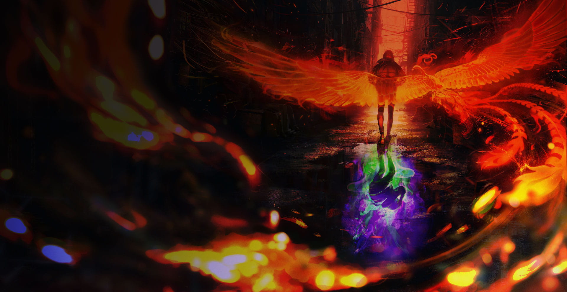 The curtains are raised to this illusionary stage battle where light and darkness come together in a swirling frenzy.